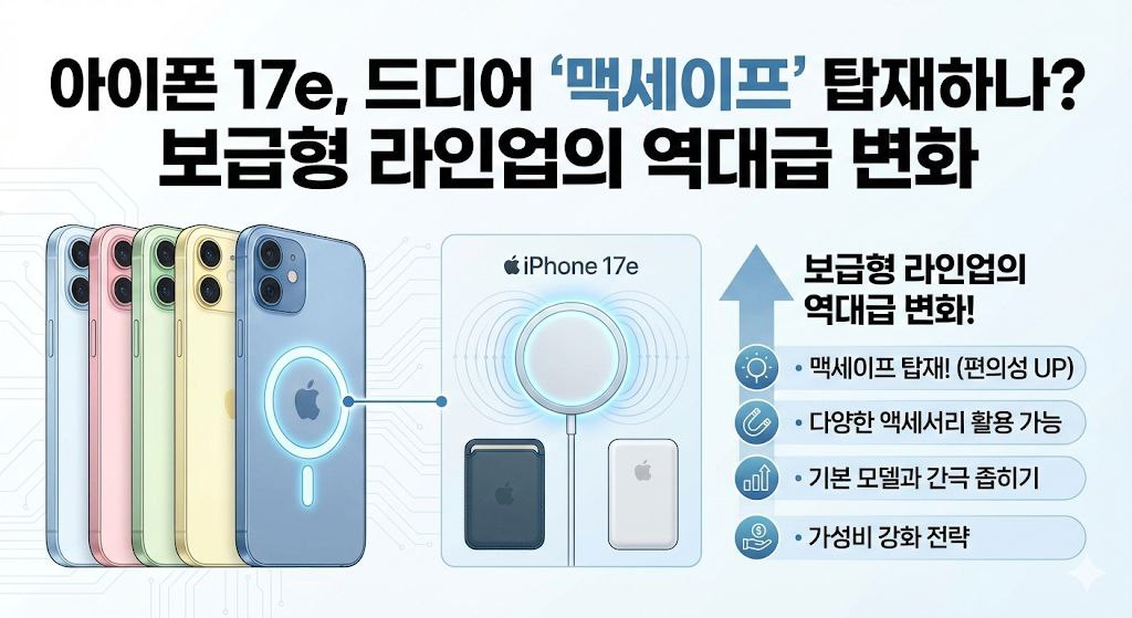 맥세이프가 탑재되면 단순히 충전 편의성이 높아지는 것을 넘어, 카드 지갑이나 스탠드 등 방대한 맥세이프 액세서리 생태계를 온전히 활용할 수 있게 됩니다. 이는 보급형 모델의 사용자 경험을 플래그십 수준으로 끌어올리는 중요한 변화가 될 것입니다.